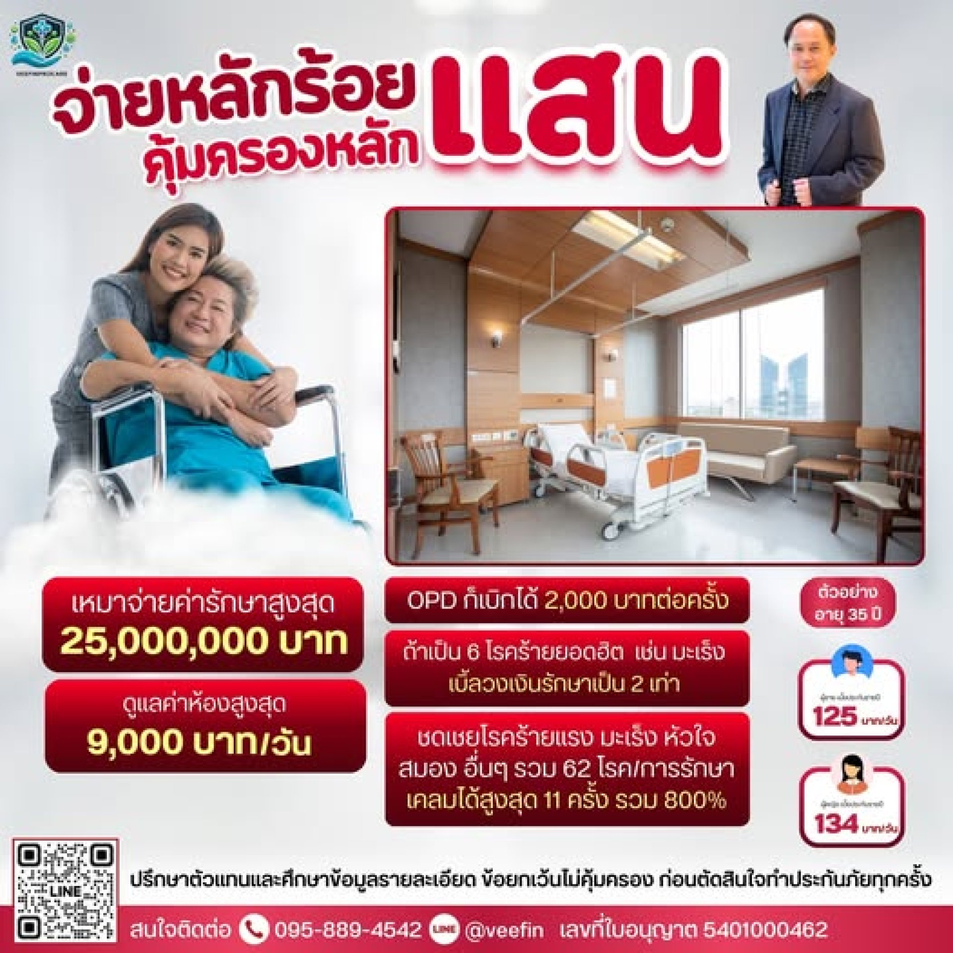 คุ้มครองค่ารักษาพยาบาลสูงสุดถึง 25 ล้านบาท! ไม่ว่าจะเป็น โรคทั่วไป อุบัติเหตุ หรือโรคร้ายแรง ก็เบิกจ่ายได้แบบสบายใจ